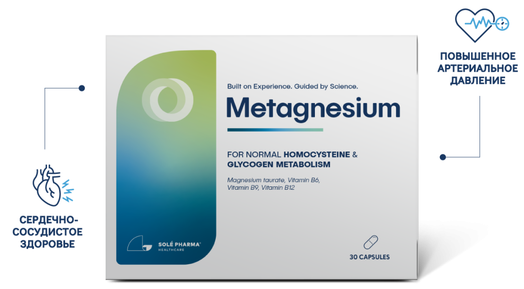 Магния тауринат — это форма магния, особенно ценимая в кардиологии за его роль в поддержании функции сердечной мышцы и здоровья сосудов. В сочетании с витаминами B6, B9 и B12 комплекс имеет кардиотропное направление, способствуя поддержанию нормального уровня гомоцистеина — важного фактора в управлении сердечно-сосудистым здоровьем. Сбалансированный уровень гомоцистеина обеспечивает оптимальную функцию сосудов, снижает сердечно-сосудистый риск и поддерживает метаболическое здоровье.